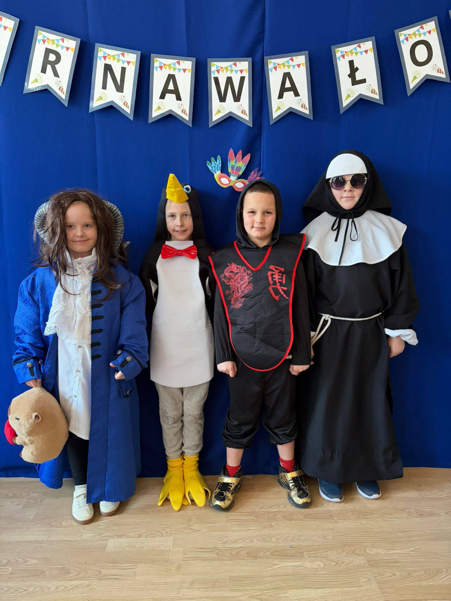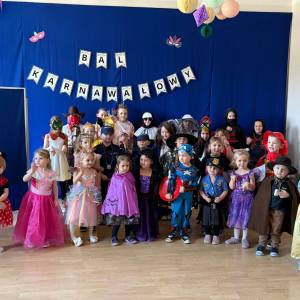 Karnawał to miła tradycja przepełniona muzyką i zabawą, gdzie ważnym elementem tego okresu są bale karnawałowe. Bal karnawałowy dla dzieci to dzień niezwykły, często wyczekiwany przez wiele tygodni. Jest atrakcją bardzo lubianą, dostarczającą wielu przeżyć i radości. Tak też było u nas. W dniu 22.01.2026 r. w naszej szkole odbył się bal karnawałowy. Tego dnia już od rana pojawiały się kolorowe postacie. Rozpoznać dzieci było bardzo trudno. W pierwszej kolejności dzieci miały możliwość pozowania do zdjęć indywidualnych i grupowych. Następnie odbyły się gry , zabawy i tańce.Bal umożliwił dzieciom spędzenie czasu w miłej atmosferze. Wspólna zabawa przyniosła wiele radości naszym wychowankom, a to było głównym celem tego balu.