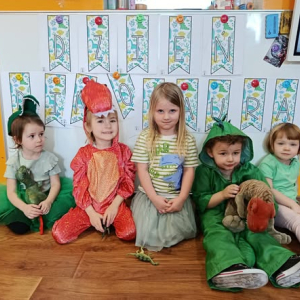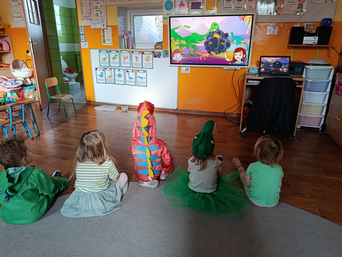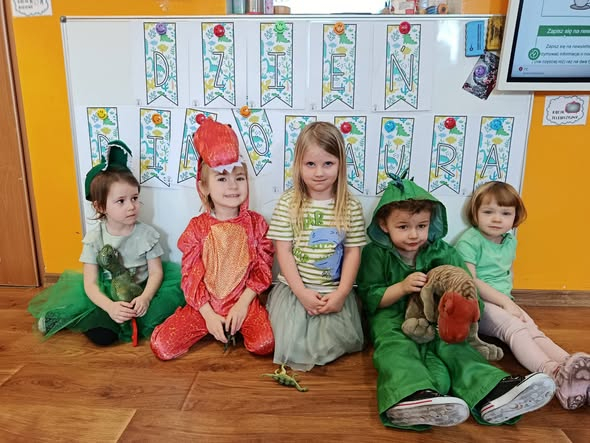 Tego dnia dzieci przyszły ubrane na zielono oraz w piękne stroje dinozaurów, co wprowadziło wszystkich w prehistoryczny klimat.