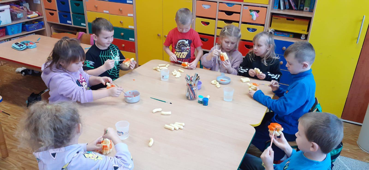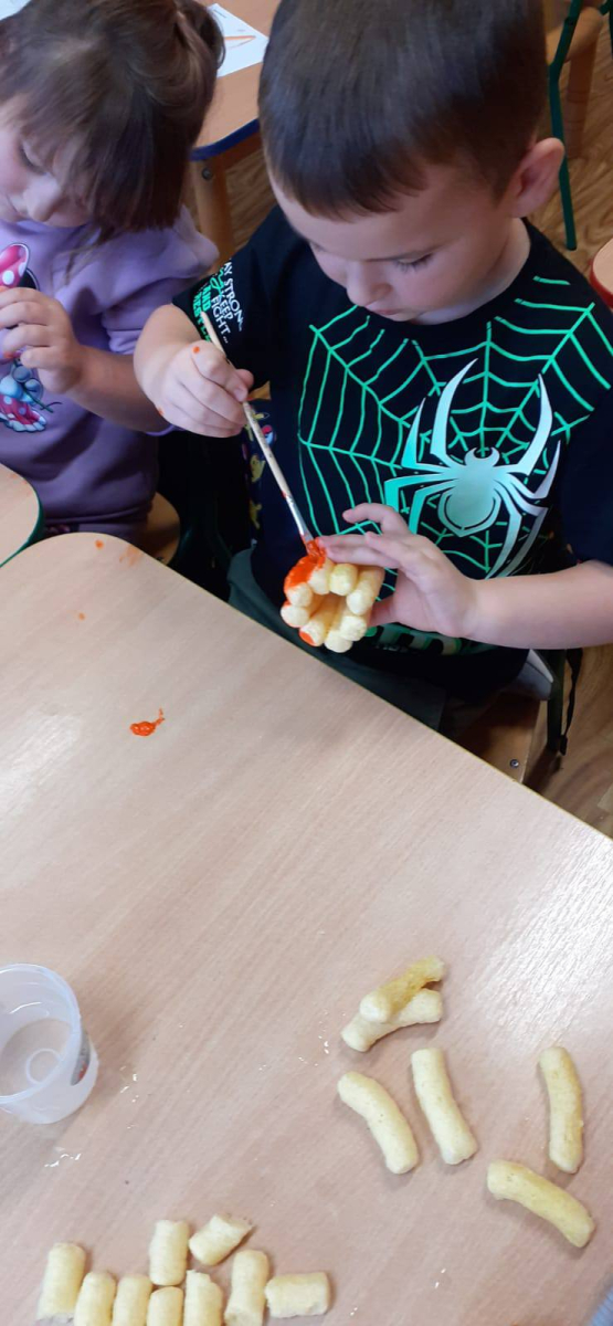 Dzieci uczestniczyły w wielu ciekawych zabawach ,tworzyły pracę plastyczne „ Dynia z chrupek kukurydzianych ” oraz rozwiązywały zadania z „ kodowaną dynią”.