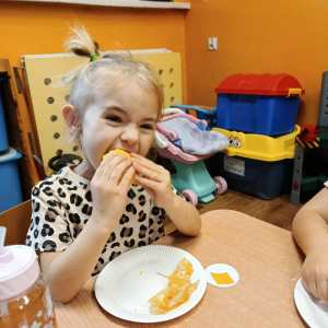 Dnia 3 listopada w oddziałach przedszkolnych obchodziliśmy „Dzień Dyni". W tym dniu, symbolicznie dominował kolor pomarańczowy.