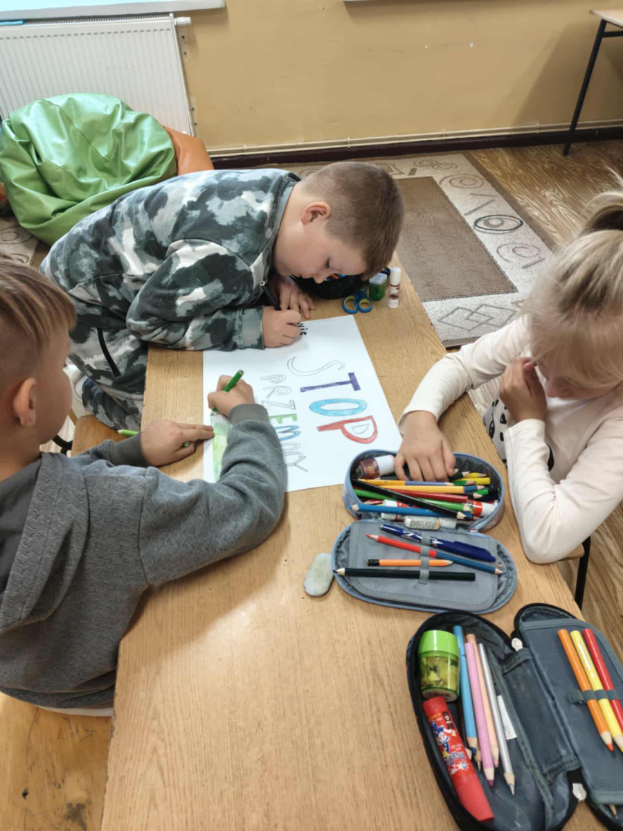 3.Wspólne wykonanie plakatu:Stop przemocy.