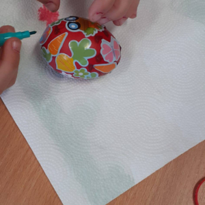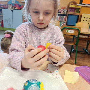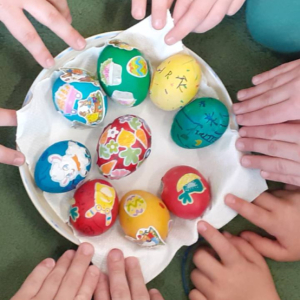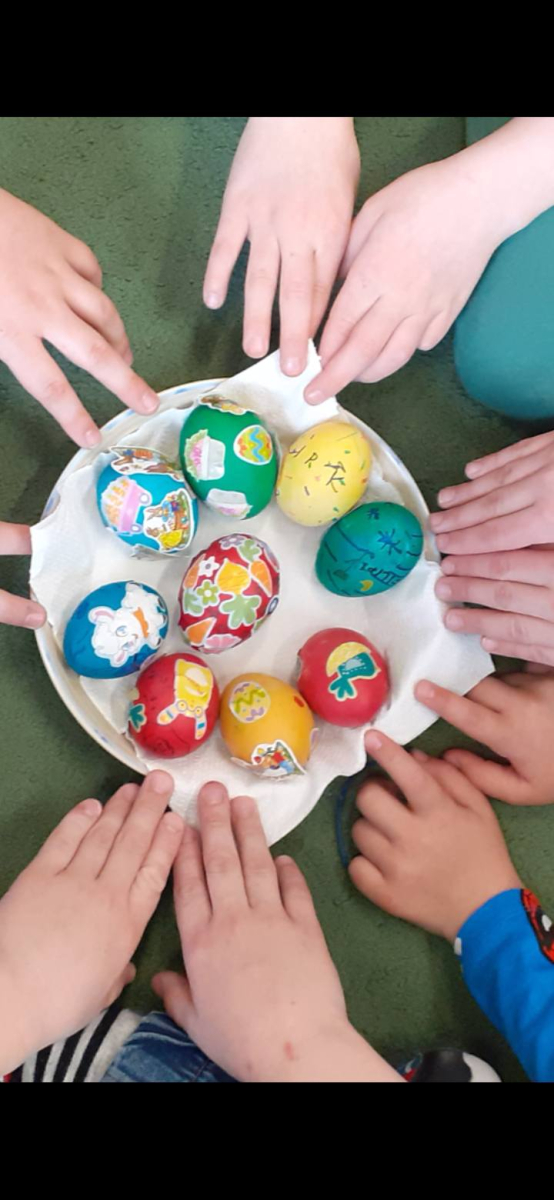 W naszej szkole piękną tradycją jest wspólne malowanie i ozdabianie jajek wielkanocnych. Każdego roku dzieci z radością angażują się w to wyjątkowe zadanie, poznając przy tym zwyczaje i symbole związane ze Świętami Wielkanocnymi.