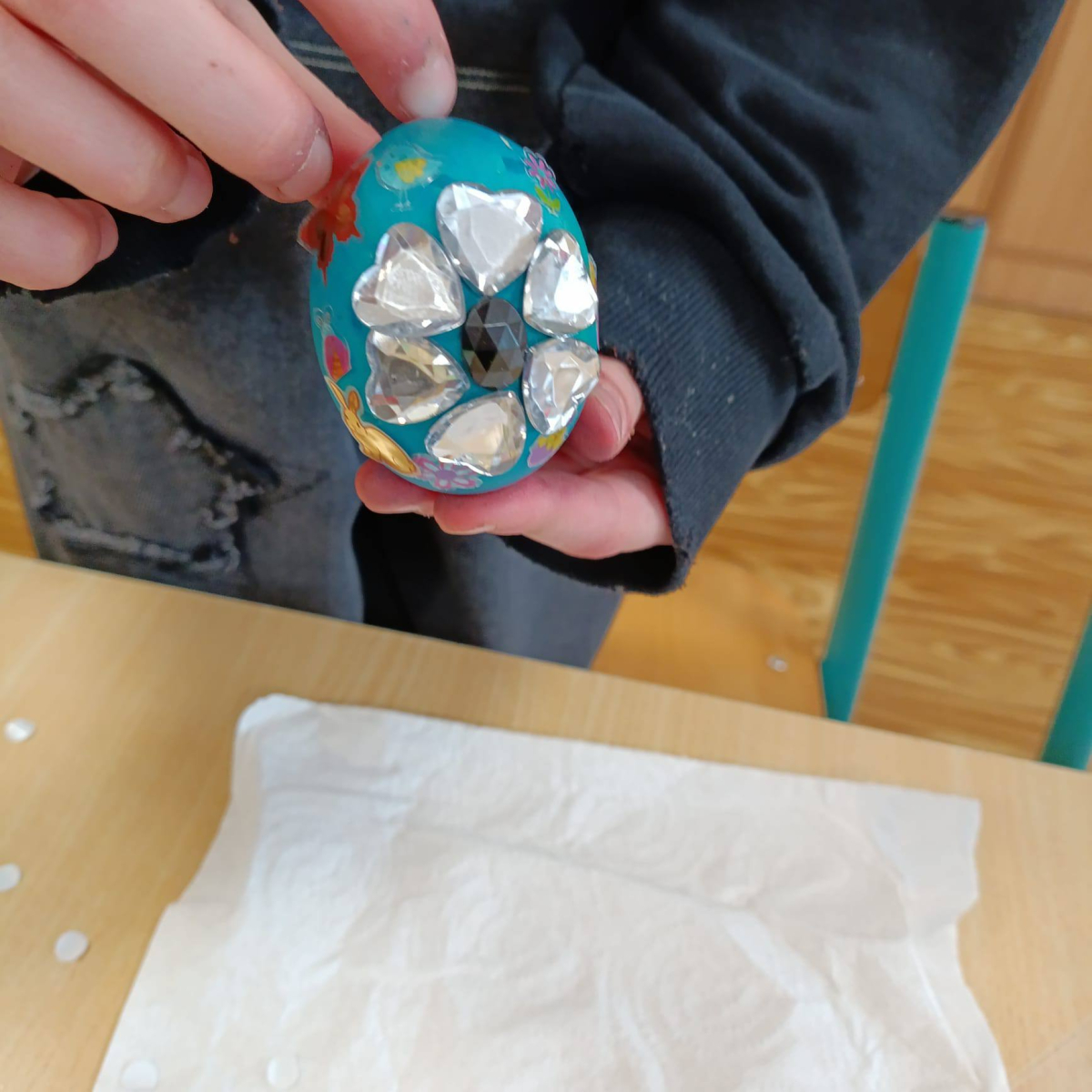Przygotowane przez dzieci jajka zostaną wspólnie zjedzone podczas śniadania wielkanocnego w szkole, które będzie czasem integracji, rozmów i wspólnego świętowania.