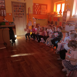 Przedszkolaki z ogromnym zainteresowaniem dowiedziały się, z czego powstaje popcorn oraz w jaki sposób się go przygotowuje. Poznały również ciekawą historię popcornu i dowiedziały się, skąd wziął się ten popularny przysmak. Dzieci z uwagą obserwowały cały proces jego powstawania, a zapach unoszący się w sali wzbudzał coraz większy entuzjazm. Jednak największą atrakcją okazała się degustacja – chrupiący popcorn sprawił wszystkim ogromną radość i wywołał wiele uśmiechów. Takie nietypowe święta są dla dzieci nie tylko wspaniałą zabawą, ale także okazją do nauki poprzez doświadczenie, które na długo pozostaje w ich pamięci.