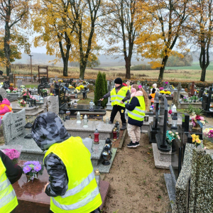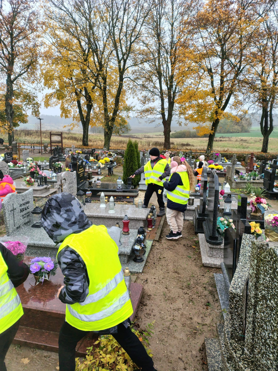 W dniu 30.10.2025 r. dzieci z zerówki oraz kl. II-III wybrały się na cmentarz, aby uczcić pamięć zmarłych. Zapaliliśmy znicze na grobach naszych bliskich oraz tych, o których nikt już nie pamięta.